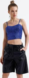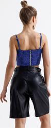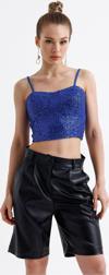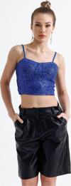 Gloplu Arkası Fermuarlı Payet Bustiyer BST33154 Saks
