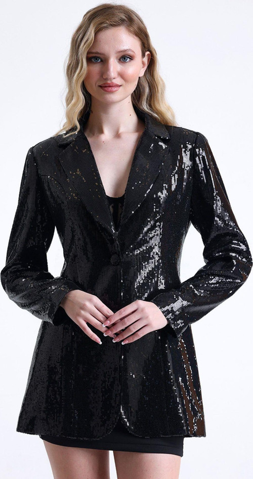 Gece şıklığına uygun pul payet deseniyle göz alıcı detaylar ekler.