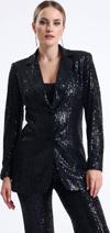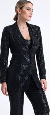 Parti ortamları için ideal, şık ve göz alıcı bir tasarım sunan içi astarlı blazer ceket.