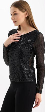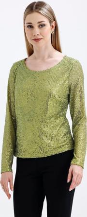 İçi Astarlı Pul Payet Abiye Bluz | Blz35497 Yesıl