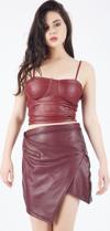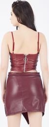 İçi Süet Dışı Deri Etek | Etk32339 Bordo