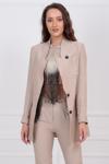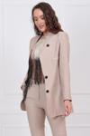 Keten görünümlü dokuma kumaştan üretilmiş, blazer kalıbında tasarlanan bu ceket, işlevsellik ve şık tasarımın mükemmel uyumunu sunar.