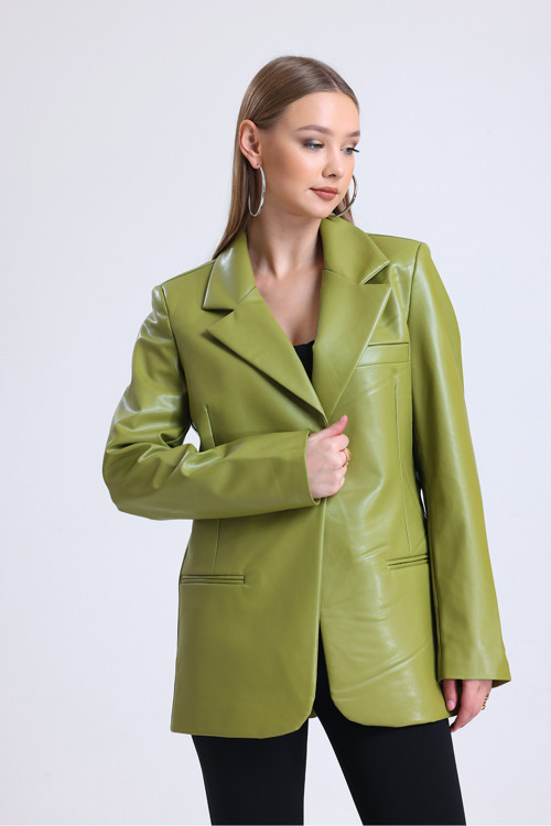 Sense Kadın Suni Deri Büyük Beden Deri Ceket Yağ Yeşili Ckt33280 Ckt33280