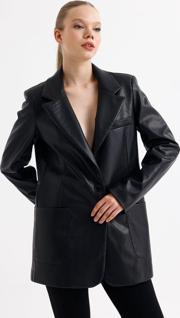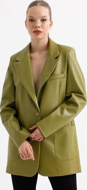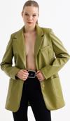 Kadın Suni Deri Ceket | Ckt33554 Yağ Yeşili