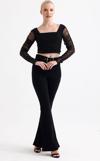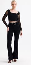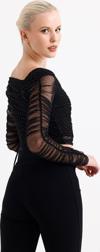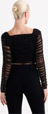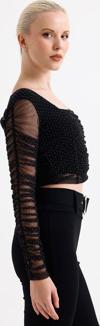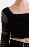 Kare Yaka Uzun Kol Lastik Büzgülü Tül Abiye Bluz | Blz33886 Siyah