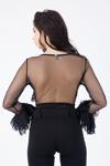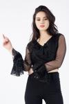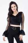 Kollar Tül Kruvaze Dantel Bluz | Blz31422 Siyah