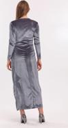 Kruvaze Uzun Kol Kadife Uzun Abiye Elbise | Elb33852 Grı