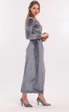 Sense Kruvaze Uzun Kol Kadife Uzun Abiye Elbise | Elb33852 Grı