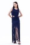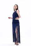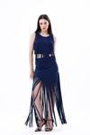 Püsküllü Scuba Abiye Etek | Etk33855 Lacivert