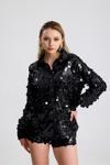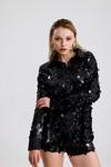 Sense Saten Garnili Pul Detaylı Payet Abiye Gömlek | Gml36395 Siyah