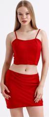 Sırtı Fermuarlı Plastik Askılı Saten Balenli Bustiyer | Bust3577 Kırmızı