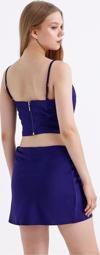 Sırtı Fermuarlı Plastik Askılı Saten Balenli Bustiyer | Bust3577 Saks