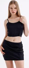 Sırtı Fermuarlı Plastik Askılı Saten Balenli Bustiyer | Bust3577 Siyah
