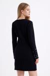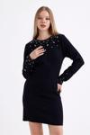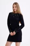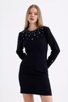 Taş Detaylı Uzun Kol Elbise | ELB35865 Siyah