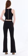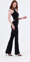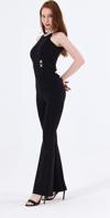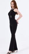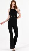 Gündüzden geceye geçiş yapan siyah tonlarıyla her ortamda şıklığınızı korumanızı sağlayan tokalı abiye tulum, zarif tasarımıyla göz kamaştırıyor.