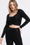 Yaş Grubu : Yetişkin Sezon : Mevsimlik Marka : Sense Cinsiyet : Kadın Web Ana Katagori : Üst Giyim Manken Ölçüleri : Kilo: 55 kg / Boy: 175 cm Göğüs: 88 cm / Bel : 62 cm / Kalça 89: cm Numune Bedeni : 36/S Kumaş Tipi : Örme Materyal : Mikro Polyester Ürün Detay : Payetli Stil : Gece Kol Tipi : Uzun Kol Kalıp : Crop Fit