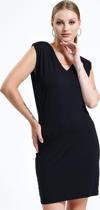 - Trend bir görünüm sunan V yaka kolsuz viskon elbise, şıklığınızı ön plana çıkarır