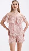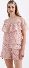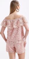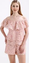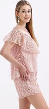 Volan Detaylı Astarlı Dantel Bluz | Blz33454 Pudra