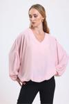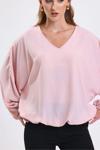 Yakası Pervazlı Etek Ucu Lastikli Jesika Bluz | Blz34815 Pudra