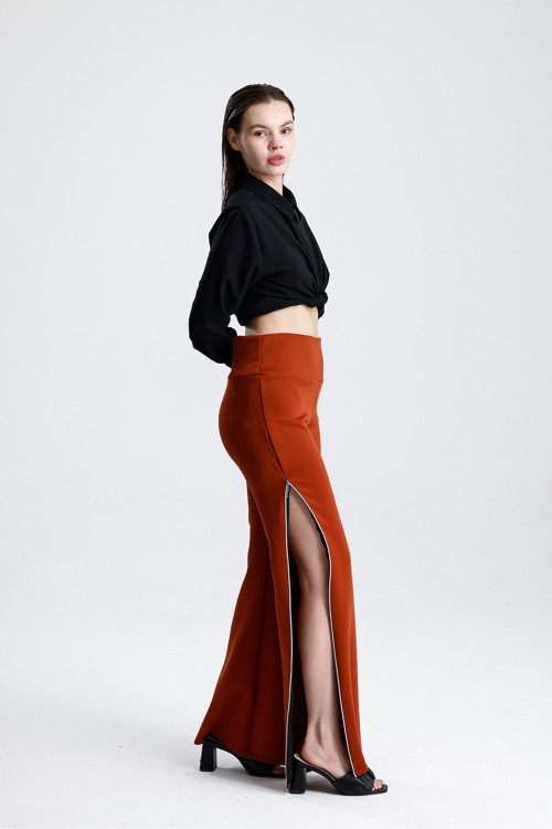 Sense markasının şıklığı ve rahatlığı bir araya getiren bu pantolon, kiremit rengiyle dikkat çeker.