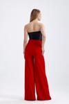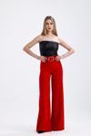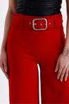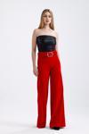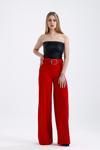 Yanları Kumaş Kaplama Kemerli İspanyol Paça Scuba Krep Pantolon | PNT33393 Koyu Kırmızı