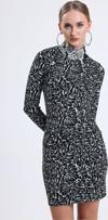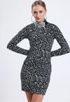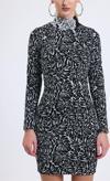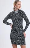 Elbise, zarif ve şık tasarımıyla dikkat çekerken, jakar desenli yapısı ile göz alıcı bir görünüm sunar.