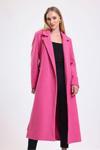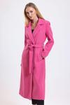 Tesettür giyim koleksiyonuna özel tasarlanmış, fuşya renkli kaşe kaban, hem günlük kullanımda hem de özel günlerde şıklığınızı tamamlar..