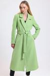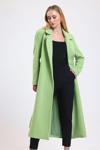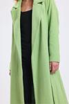 Tesettür giyim koleksiyonuna özel tasarlanmış, şık ve modern bir görünüm sunan yırtmaç detaylı kuşaklı uzun kaşe kaban..