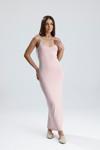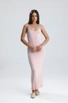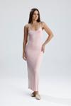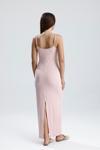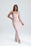 Yırtmaçlı Askılı Likralı Viskon Elbise | ELB35782 Pudra