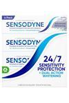 Sensodyne Advanced Whitening, hassas dişler için geliştirilmiş ve çifte etki sağlayan beyazlatıcı özelliğe sahip diş macunudur. Düzenli kullanımda (günde 2 kez fırçalama ile) 24 saat boyunca hassasiyet koruması sağlar. Dişlerde oluşan lekeleri nazikçe temizlerken yeni lekelerin oluşumunu engellemeye yardımcı olur.