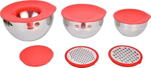 Senz Luna 9 Parça Saklama ve Karıştırma Kabı Rendeli Kırmızı Kapaklı