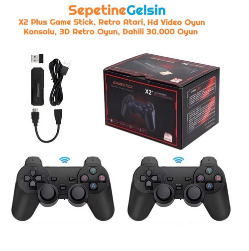 Sepetinegelsin X2 Plus Game Stick, Retro Atari, Hd Video Oyun Konsolu, 3D Retro Oyun, Dahili 30000 Oyun