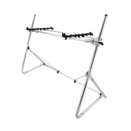 Dış düğme, kat(klavye rafı) yüksekliğini ayarlamanıza olanak tanır ve iç kol, açıyı dişliler olmadan serbest bir aralıkta ayarlamanıza olanak tanır. Ayarlanabilir yükseklik, oturarak veya ayakta performansa uyum sağlayabilir ve raf sabit üniteden kolayca ayrıldığından, prova sırasında standı istediğiniz yüksekliğe ayarlayabilir ve daha sonra, performans esnasında aynı ayarlara sahip olacağınızı bilerek söküp taşıyabilirsiniz. Ayrı satılan ek bir raf bağlantısı ekleyerek enstrümanlarınızı en rahat çalma açısına (örneğin alt enstrümanı düz tutarken üst enstrümanı hafifçe kendinize doğru eğerek) kolayca yerleştirebilirsiniz.