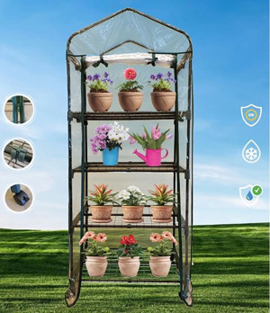 Gardener 16040 4 Katlı Tekerlekli Portatif Şeffaf Bahçe Serası - 69 cm x 49 cm x 158 cm - Image 1