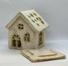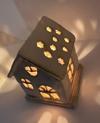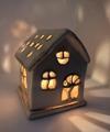 Sıcak ışığıyla huzurlu bir atmosfer yaratan bu el yapımı seramik ev mumluk, detaylı pencereleri ve zarif formuyla hem dekoratif hem işlevsel bir parça.