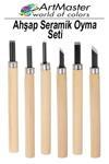 ArtMaster Seramik Oyma Seti Ahşap 6 Lı 1 Paket Set Paslanmaz Çelik Bıçaklı Ağaç Oyma Heykel Hobi Kretuar Gravür