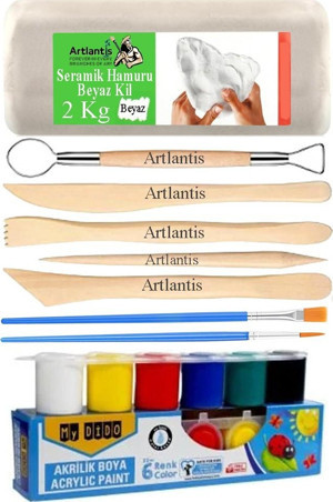 Artlantis Beyaz Seramik Hamuru 2 Kg Ebeşuar Modelleme Mydido 6 Renk Akrilik Boya Fırça Seramik Çamuru Heykel Sanat Çömlek