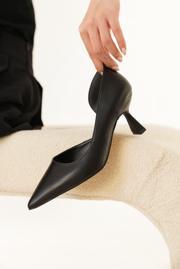 Etiler Collection'un zarif tasarımıyla dikkat çeken bu mat siyah topuklu ayakkabı, şıklığı ve konforu bir arada sunar.