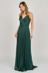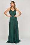 Detay: Askılı, belden aşağı kloş, yırtmaçlı, astarlı abiye elbise;