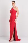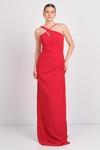 Detay: Boyundan bağlamalı tasarımıyla şıklığı vurgulayan bu maxi abiye elbise, dökümlü krep kumaşıyla zarif bir siluet sunar. Bel kısmındaki drape detayı vücut hatlarını nazikçe ortaya çıkarırken, yandan yırtmaç detayı feminen bir dokunuş katar. Astarlı yapısı ve gizli fermuarı sayesinde konforlu bir kullanım sağlayan bu model, özel davetlerde sade ama etkileyici bir stil arayanlar için ideal bir tercihtir;