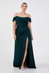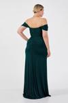 Kadın Büyük Beden Düşük Omuz Derin Yırtmaçlı Balık Form Abiye Elbise 8212 Nefti