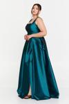 21927 Yeşil Omuzu Iki Katlı Beli Taş Işlemeli Kadın Büyük Beden Abiye Elbise - Image 1