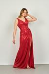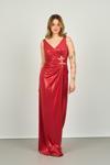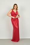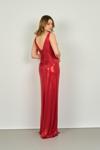 Detay: Ön ve arka V yaka, bel kısmı pencere detaylı, astarlı, uzun abiye elbise;