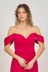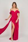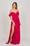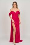 Detay: Düşük omuz, derin yırtmaçlı ,uzun, astarlı abiye elbise;