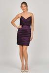 Detay: Straplez, sivri yaka, mini, astarlı abiye elbise;