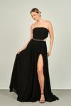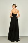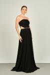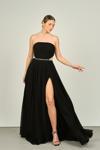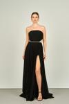 Detay: Derin yırtmaçlı, sırt detaylı, astarlı, uzun abiye elbise;