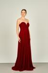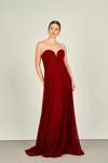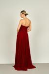 Detay: Straplez, yandan yırtmaçlı, uzun, astarlı abiye elbise;