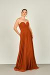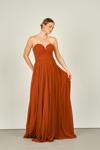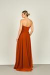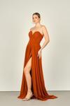 Detay: Straplez, yandan yırtmaçlı, uzun, astarlı abiye elbise;
