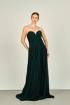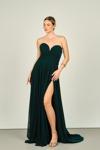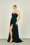 Detay: Straplez, yandan yırtmaçlı, uzun, astarlı abiye elbise;