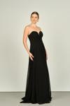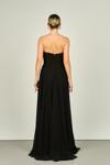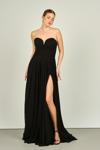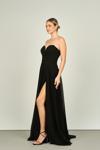 Detay: Straplez, yandan yırtmaçlı, uzun, astarlı abiye elbise;